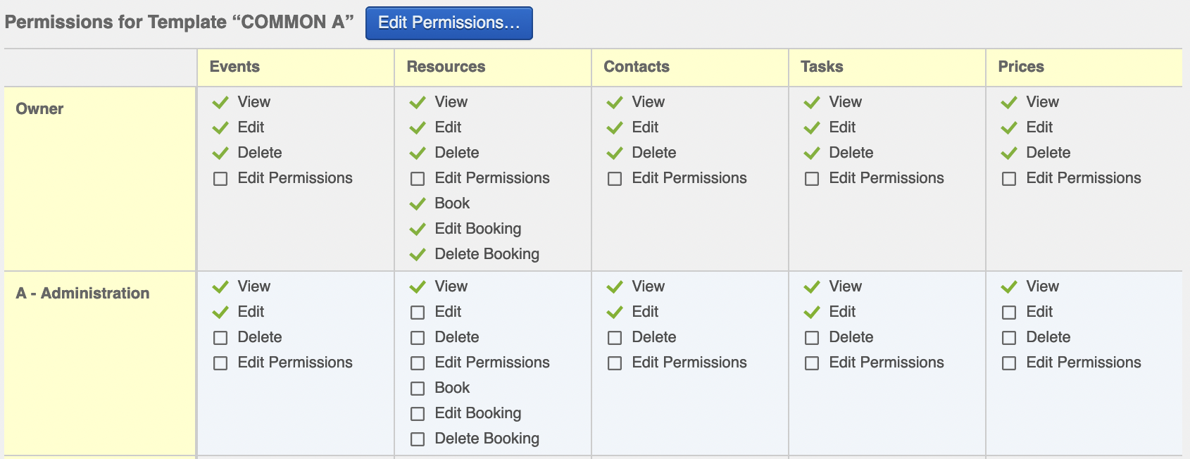 - The first option allows you to define the permissions for resource bookings in detail, but you have less control over them. For example, a user may not be able to edit an event, but may be able to edit resource bookings and their prices on that event. Of course, this isn’t always desirable.