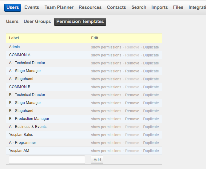 Managing permissions in Yesplan is broken down into the various actions that a user can execute (their so-called capabilities) and managing which users have access to which events, resources, prices, contacts and tasks.