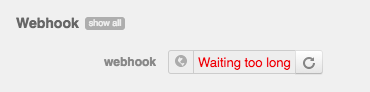 If the external service takes too long to send a corresponding “Update State” request, the field will be put in an error state “Waiting too long”. At this point, the user can try again by pressing the field’s refresh button. Yesplan will repeat the “Take Action” request that it sent before.