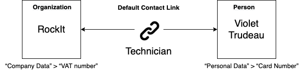 • For the organization ‘RockIt’: Violet Trudeau’s card number, because Technician is the default contact link between RockIt and Violet Trudeau.