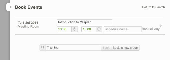 In the second step—booking events in the chosen time slot—you can enter a name for the event and enter the desired start and end time (see Figure 4).