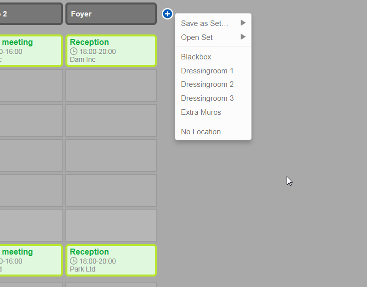 • When you open the event calendar, Yesplan will only show the first thirty locations. Please take this into account if your location set contains more than thirty locations: you’ll need to call up the set manually after opening the event calendar.