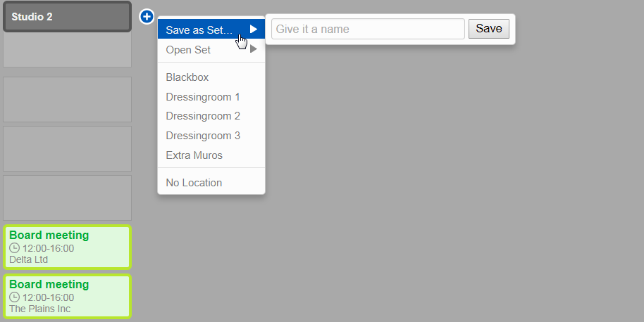 You can create a set via the same menu that is used for adding a location to the displayed locations (via the ‘+’ icon next to the rightmost column). Give the set a name to find it again quickly. When you click a saved set in the drop-down menu, the currently displayed locations are hidden. Only the locations in the set will appear.