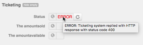 If the ticketing service doesn’t send a message back, the tooltip shows a default message about the HTTP status code of the response: