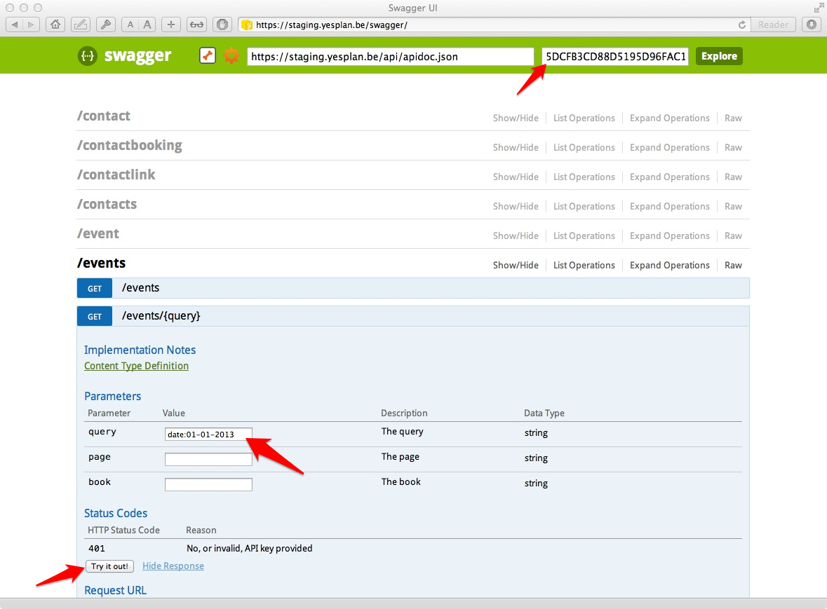 • It is available at https://[organizationname].yesplan.be/swagger.