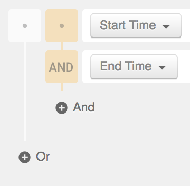 La chaîne d’origine contient uniquement AND : chaque sélection de l’opérateur AND ajoute donc un filtre, tandis que chaque sélection de l’opérateur OR démarre une nouvelle chaîne.