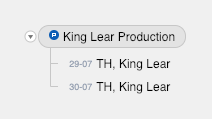 Les deux représentations sont désormais réunies dans un nouveau groupe. Renommez le groupe « King Lear Production » en double-cliquant sur le nom et configurez la production via le menu contextuel (comme précédemment).