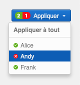 Vous pouvez toujours modifier un contrat dans les paramètres du système, mais si le contrat a déjà été assigné à un ou plusieurs collaborateurs avant la modification, ces collaborateurs continueront d’utiliser l’ancienne définition du contrat. Si vous souhaitez répercuter les modifications sur ces collaborateurs, cliquez sur le bouton bleu « Appliquer les modifications » en haut du contrat. Vous pouvez alors choisir d’appliquer les changements à l’ensemble des collaborateurs ou seulement à certains d’entre eux. Ce bouton n’apparaît que si la définition du contrat modifiée n’a pas été appliquée à l’ensemble des collaborateurs.