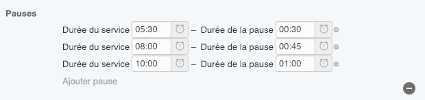 • Les services d’une durée supérieure à 10 heures doivent comporter au moins 1 heure de pause.