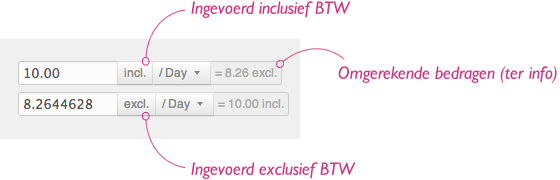 Bij het invoeren van bedragen voor de kostmodellen is het nu duidelijker of een bedrag inclusief of exclusief btw is ingevuld. Je kan dit bedrag kan nu ook met meer dan twee cijfers na de komma invullen. Het omgerekende bedrag verschijnt uiteraard nog steeds (ter info, en eventueel afgerond).