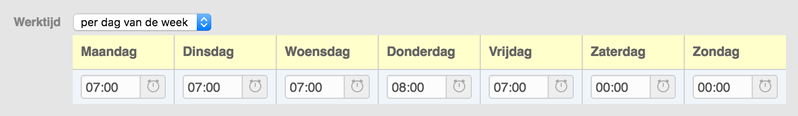Voortaan kan je ook werkschema’s invoeren per dag van de week. Dit laat het toe om voor elke dag van de week het aantal te presteren uren in te voeren. Dit is handig voor contracten die afwijken van de standaard werkweek van maandag tot vrijdag (bijvoorbeeld werken van woensdag tot en met zondag), voor deeltijdse contracten (bijvoorbeeld werken op maandag, woensdag en vrijdag), of voor contracten waarbij er niet elke dag even lang wordt gewerkt (van maandag tot en met donderdag een beetje langer werken en op vrijdag wat vroeger stoppen).